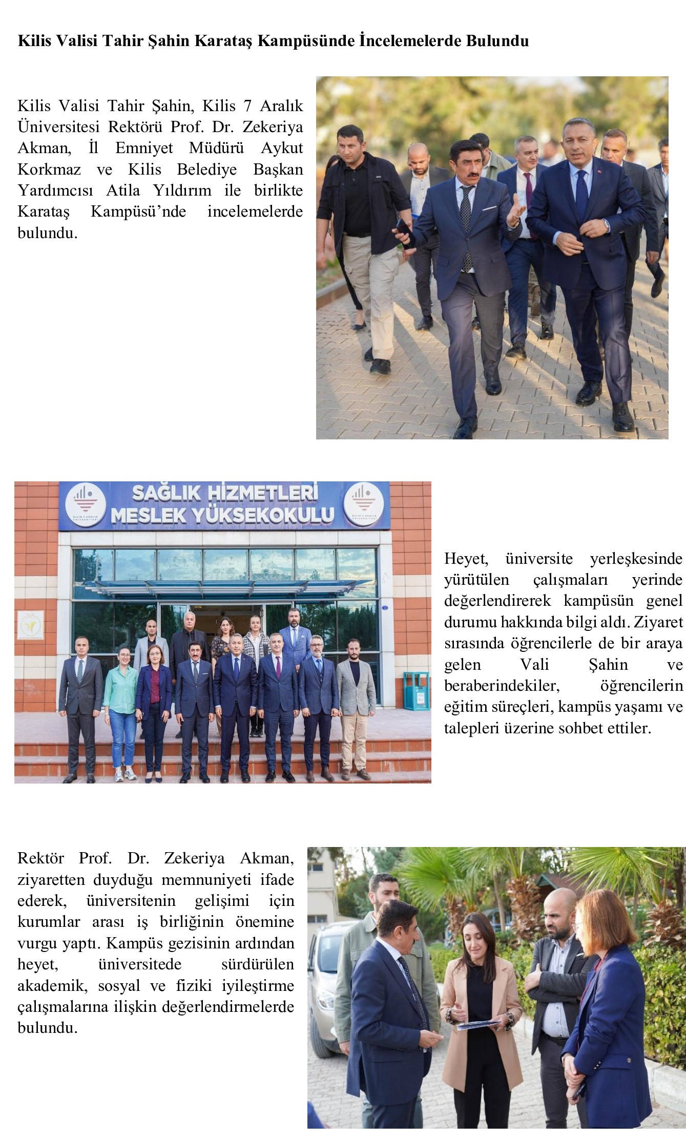 Kilis Valisi Tahir ŞAHİN Karataş Kampüsünde İncelemelerde Bulundu