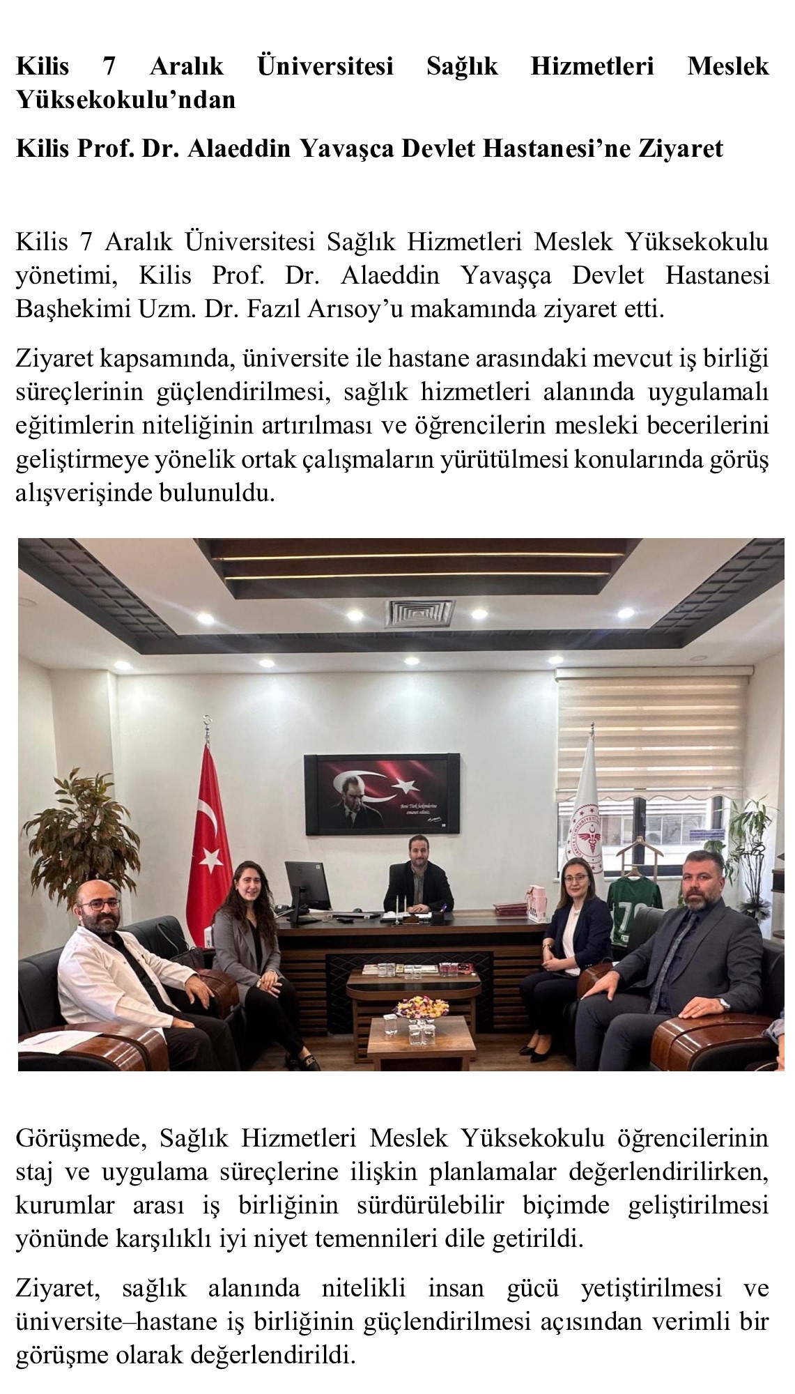 9) Haber : Kilis Prof. Dr. Aleddin Yavaşca Devlet Hastanesi'ne Ziyaret